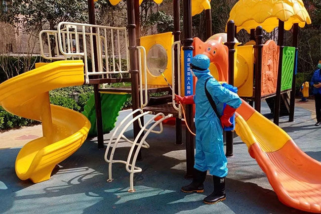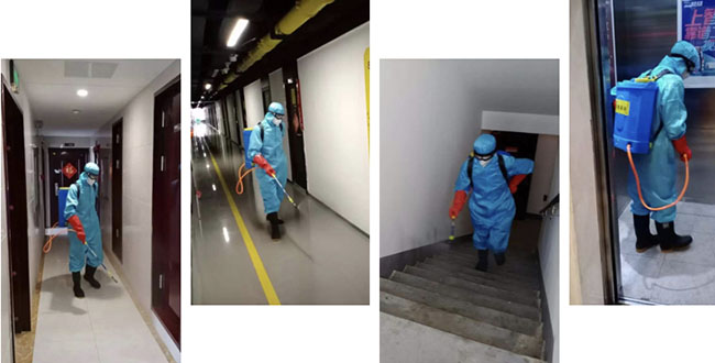 在疫情面前,贾长礼师傅主动请缨要求担当园区的消杀任务,目前疫情严重,园区的全面消毒消杀是重中之重。