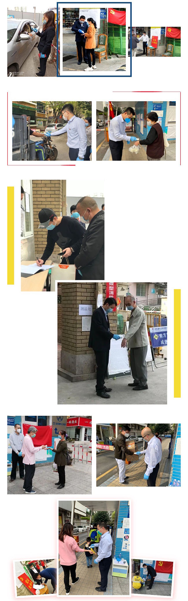 为此,第三党支部结合当前疫情防控形势和公司对疫情防控的要求,开展了“防疫保安全,党员当先锋”主题党日活动,组织党员利用周末下沉一线,分组分时段到天河东、沙园及黄埔等物业服务点,顶替一线人员开展入口测温、登记排查等工作,让部分一线人员进行适当休息,缓解近期高强度工作所产生的疲劳,以保持昂扬斗志和旺盛精力,从而更好地持续投入工作。
