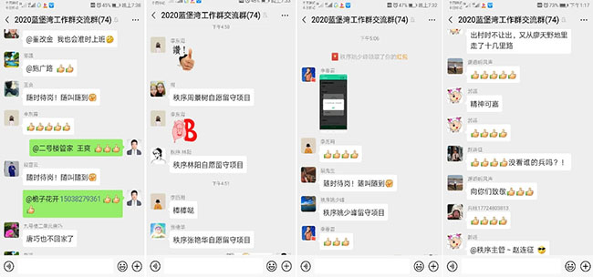疫情就是命令,防控就是责任。1月27日,蓝堡湾项目工作群内,在郑员工纷纷做出承诺,自愿坚守岗位,外地员工争取按时返岗。