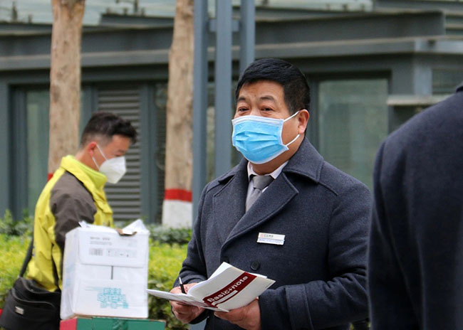 项目经理董改金1月中旬开始就一直坚守在项目,坚守在门岗,带领环境员工到9号楼确诊业主楼层开展消杀工作,关注隔离户垃圾清理工作,对接社区业主情况、协调项目员工休息、储备防疫物资用品... ...2月20日,随着员工的陆续返岗,项目高强度的工作状态得到缓解,他也被领导要求回家休息。