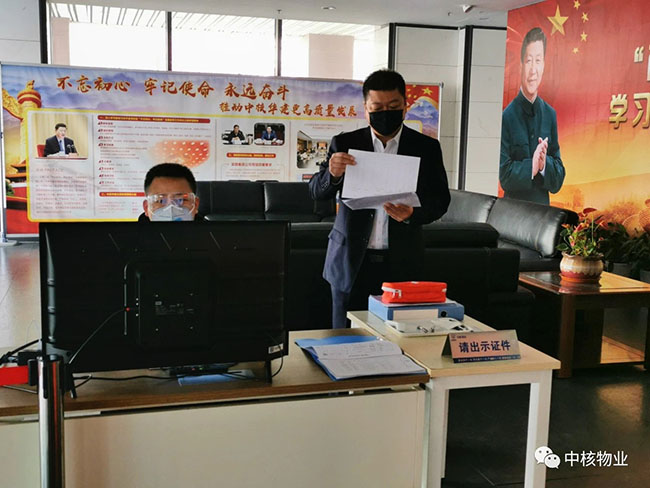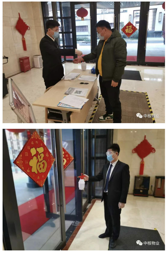中核物业青岛科技园项目外包保安员苗艳林在春节疫情期间为了更好地能把控守护好园区,吃住都搬到离园区不远的空旷工地板房内,每天早上在门岗上对每位进出人员认真进行测温记录及消杀,一丝不苟,在外来访客没有业主方人员的接洽坚决不准进入园区,有时别人会送他句“跟个门神一样”,他也会嘿嘿一笑说到“是门神就必须当好,要不然我在这里干什么!”