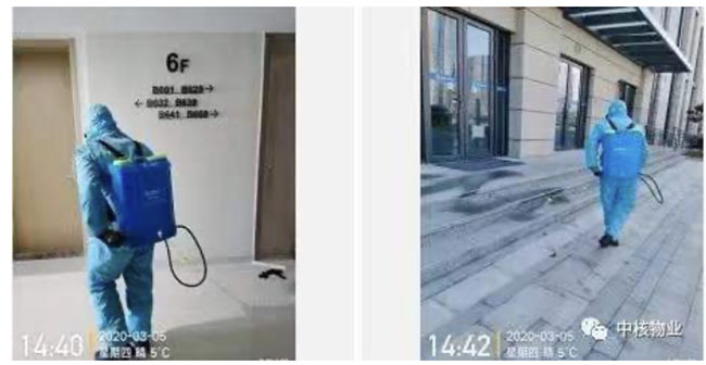 苗艳林同志不嫌脏不嫌累,每天肩上背着40多斤的喷雾器都要绕着园区各个角落喷2遍,由于84消毒液味道较为浓烈,一天2遍下来鼻子都失灵了,可他却从未喊过苦叫过累。他对工作的细节也特别上心,无论业主方人员还是物业服务工作人员,只要出入园区,回到门岗室他都会认真进行手部、脚部的消杀工作,得到了大家的一直认可。