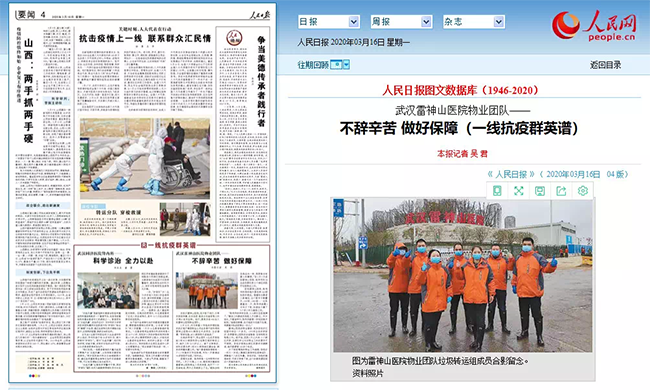 (原标题:《武汉雷神山医院物业团队——不辞辛苦做好保障》;刊登于《人民日报》2020031604 版)