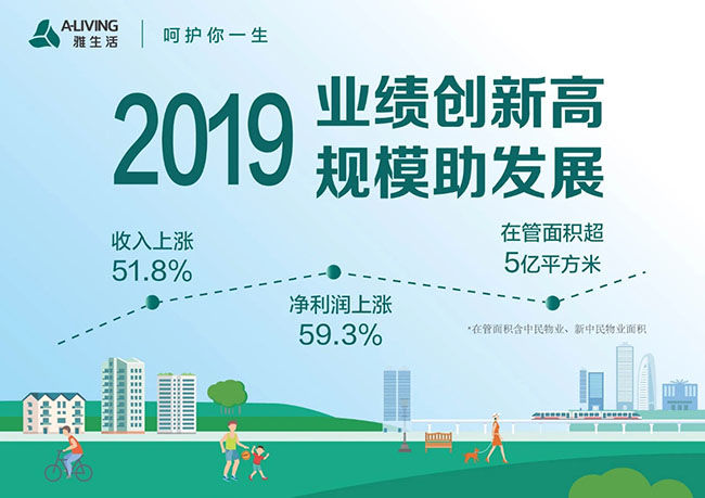 2019年是雅生活发展史上具有里程碑意义的一年。在这一年中,雅生活取得了优异的成绩,集团收入、管理规模以及盈利能力均取得了突破式的增长,集团第一个“三年规划”(2017-2019)完美收官。