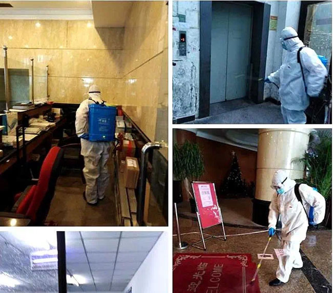 除此之外,外围垃圾中转站、华联货梯门口、大厦楼道、车库、餐厅入口处尤其是废弃口罩回收桶等位置,都是刘青春每天必经的地方,多次的消杀工作,确保不留死角,杜绝病毒传播。