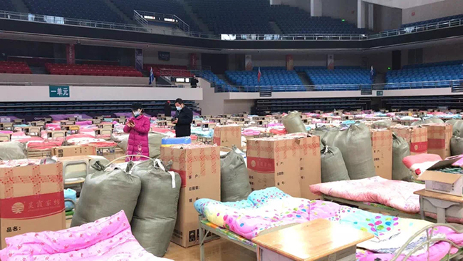 2月3日,武汉市方面确定首先在洪山体育馆等三个场馆建“方舱医院”,收治患者。当晚7点多钟,湖北中楚物业洪山体育馆项目部接到拆馆任务,从当天晚上七点连续奋战到第二天凌晨8点多,拆赛台、卷地胶,不舍昼夜,几十卷地胶,每卷800多斤,寒冷的冬夜,大家干得汗流夹背,争分夺秒,提前完成清场任务。