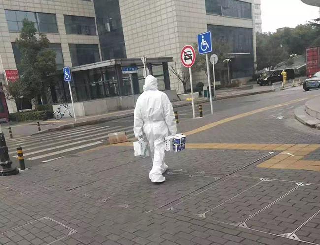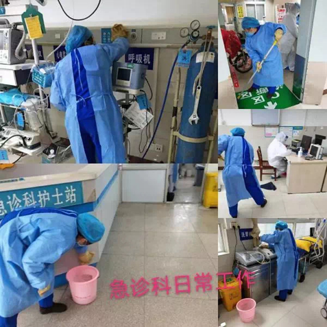 据悉,感染科、发热门诊、放射科和改装后的内分泌科,因疫情需要,不仅要新增员工,还要求24小时待岗,每天分四个时段进病区,每次需要操作四个小时,工作内容为:清理病区所有垃圾并打包封口、用84消毒液拖擦地面、擦拭所有物表、床单位终末消毒等,中楚物业的物业人们遵照二级防护要求穿戴隔离衣、防护服、防护面罩、双层手套和口罩帽子,行动极为不便,每次操作出来时,浑身湿透,汗流浃背。