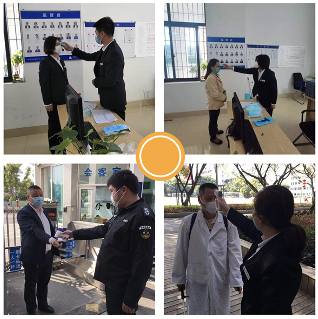 为确保复工人员安全返岗以及业主的健康,针对异地需返校员工下发14天隔离告知及隔离期间的注意事项,同时对隔离期满人员进行解除隔离告知和解除后注意事项告知;在服务中心内、外每日由当班负责人把关,做好返岗员工上岗测温、口罩佩戴等检查工作。