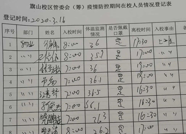 遵照学校要求,永安物业在管的两所高校项目服务中心在疫情期间实行工作不停,汇报不止的工作机制,每日下午四点准时向甲方汇报当日工作并发送当日上班人员体温登记表,确保万无一失的开展防疫工作。