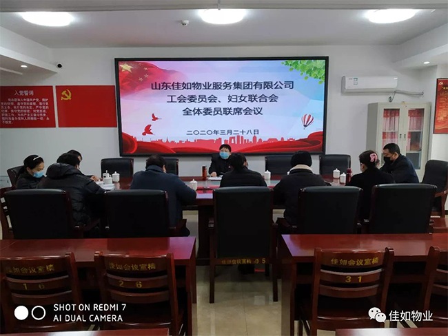 2020年3月28日,山东佳如物业服务集团有限公司工会委员会、妇女工作委员会全体委员联席会议在集团公司总部会议室召开,集团公司工会全体委员、妇委会全体委员参加了会议。集团公司党总支书记、总经理黄慧敏应邀参加了会议。