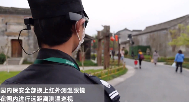 传统的测温枪速度慢,容易造成扎堆,不利于景区防疫。而神器—AR眼镜则不同一是高效,目之所及都能测到,多人同时进行,一闪而过即知体温;二是便捷,带在头上很轻便,站在门岗就能轻松完成检测;三是准确,之前常遇到司机要摇下车窗通气后,再测量体温的情况,而AR眼镜测温更稳定,不容易受外界影响,我们目前设置了37.3度,超过设定值就会自动“嘀嘀”报警;四是私密,能够远距离的识别,真正做到“无接触”,不会打扰游客观光,体验感好。