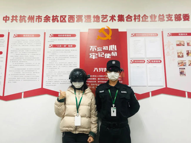 姚寿林希望通过我们表达一份特别的感谢:“AR眼镜和智能测温头盔都是西溪湿地管委会配备给我们绿城物业的,一共有三套智能设备,其中AR眼镜从3月24日投入使用,十分感谢管委会的大力支持。这个眼镜大大地节省了人力,提高工作效率,减轻工作负担,让我们有条件增加重要节点的巡逻频次。除了门岗智能测温外,每半小时,保安就会佩戴眼镜在嘻嘻乐园、四季花海、洪府广场等人口密度大的区域复看,无打扰精准排查,让安全双保险。”