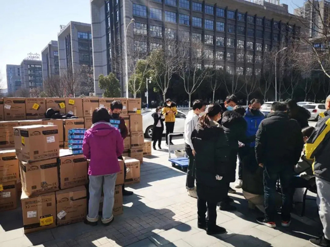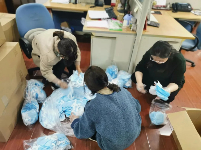 协会通过市发防疫指挥部提供的物资购买渠道,为物业企业争取到第十一批政府补贴口罩1.3元/个,秘书处工作人员加班分发。