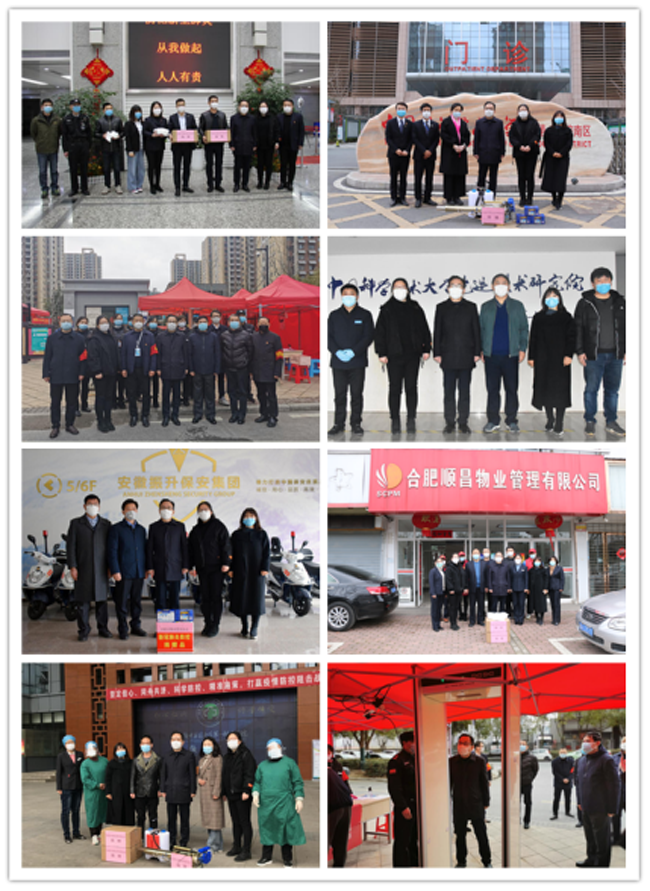 3月5日,协会一行先后走访了皖投天下名筑、柏景湾、华邦繁华里、智能装配科技园、工商银行后台中心等5个物业服务项目,深入了解各项目疫情防控工作情况以及疫情期间企业经营状况和面对大量业主复工后的相关措施,为坚守疫情防控一线的物业人员送去了慰问品等物资。