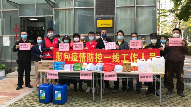 2月20日下午,在福田区莲花街道康欣社区党委负责人刘晓锐等社区工作人员的见证下,杨志敏主任作为代表亲手将业主捐献的一批防疫物资交到物业代表的手中,对天健物业在小区疫情防控工作中的付出表示感谢。