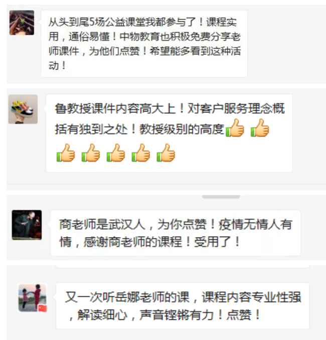 公益课期间,学员们纷纷点赞,一条条评论表达了大家的感谢之情: