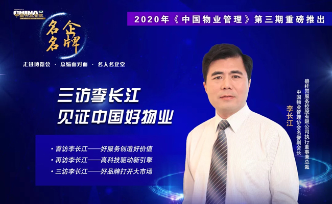 2019年12月,依然在隆冬时节,依然在顺德碧桂园总部,与我要采访的人如约相见,当我穿过物业总部的办公室时,眼前一亮:“做全中国最好物业”八个金字赫然镶嵌在墙上。当我跨入总裁办公室的时候,眏入我眼帘的还是那个笔挺身材、目光睿智的李长江,西服罩在他的身上还是那么职业和精神,两只眼睛喜悦而有神,看得出喜上眉梢,定有捷报传来。