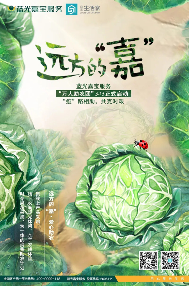 疫情期间,部分地区受交通限制,导致农户蔬菜大量滞销。为解决农户销售难,降低农户损失,3月13日,蓝光嘉宝服务西南区域重庆公司正式启动“远方的‘嘉’——爱心助农计划”。双线作战两不误:共同打赢疫情防控阻击战、脱贫攻坚战!