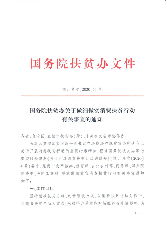 国务院扶贫办关于做细做实消费扶贫行动有关事宜的通知