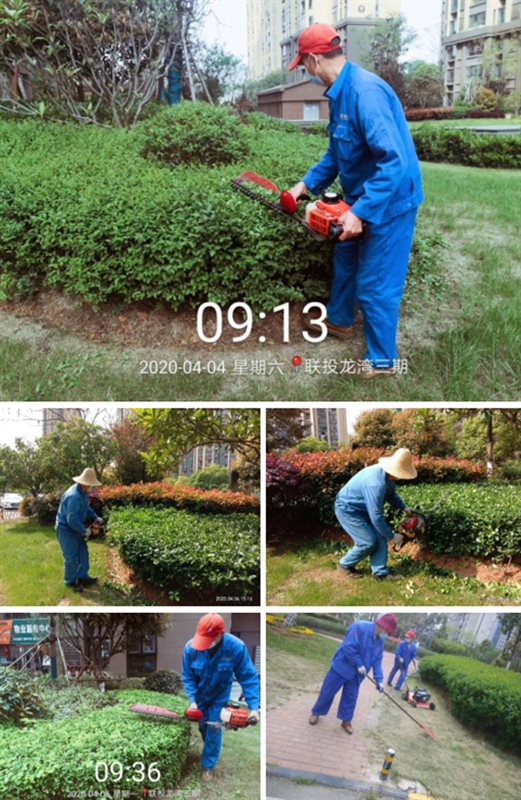 主干道绿植修剪,其它区域草坪、绿植修剪,展现园区盎然生机。