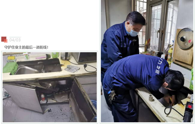 所幸业主家中内众人并无大碍,大家悬着的一颗心也慢慢放下,帮助业主清理现场,开展善后工作。