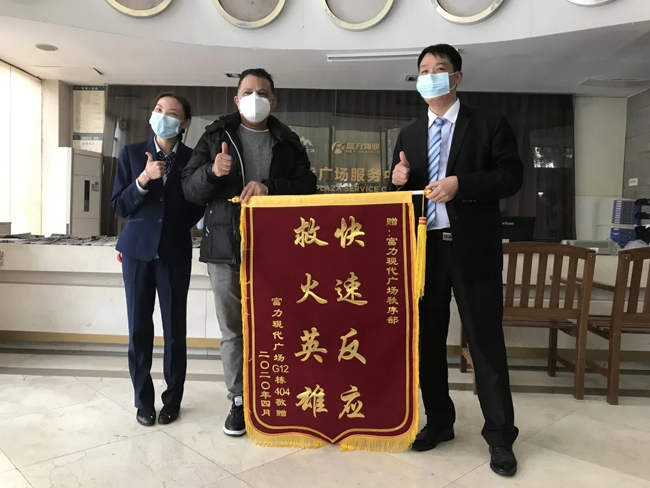 秩序经理宋宗栓指挥现场,工程部主管徐兴勇进行用电总阀和煤气总阀关闭处理,客服邱雪如待命协助,众人齐心协力,扑灭火源。
