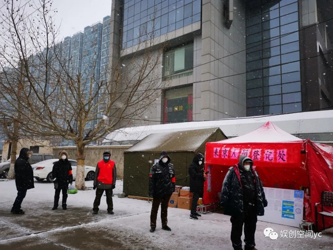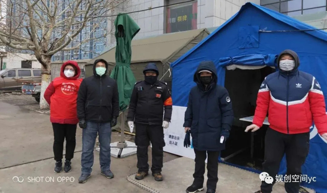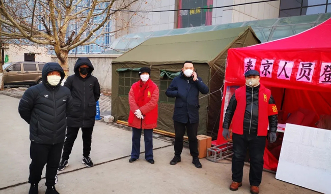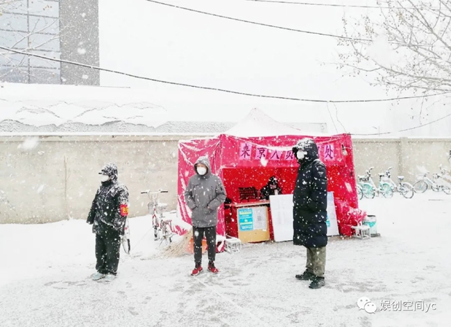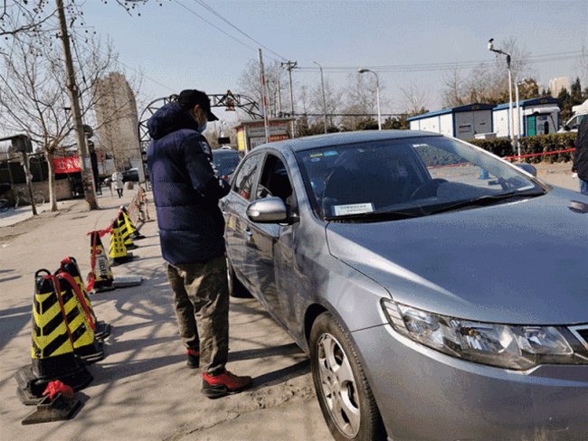 设置在小区西南门的疫情督查点,自从防疫最初开始到现在,俨然成了物业经理曲屹松的办公区。上午是他值班,下午是物业副总经理王成值班。风里雨里他们一站就是四五个小时。所以经常能看到他们一边有条不紊地安排日常工作,一边手疾眼快地拦下过往的行人测温。与其他工作相比,社区防控疫情,是目前最紧要的工作。