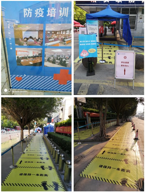 为做好开学复课这张答卷,在校方的指导下,提前制定复学复课管控方案,并对学校各区域服务场景进行设计,对各区域布置统一的温馨提示、消毒液、宣传物料等。