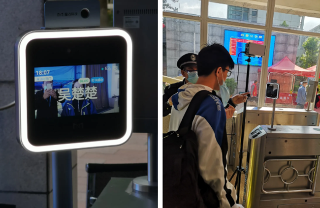 率先使用人脸识别测温,智慧防疫,把好入校第一关。
