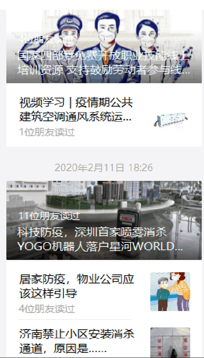 自疫情爆发以来,行业学院将官方订阅号作为宣传阵地,每日及时更新发布疫情防控的科普知识、操作指引及政策法规,帮助物业人正确认识新冠病毒的传播特性、正确地自我防护、科学地开展社区疫情防控。