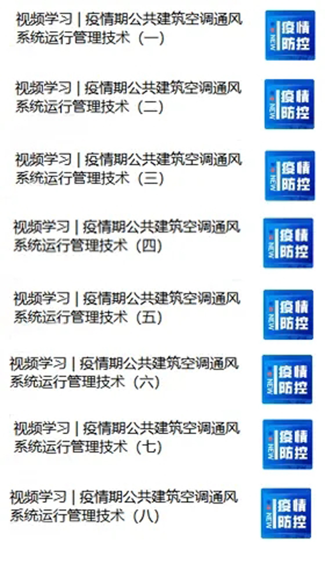 ▲行业学院制作的816集《疫情期公共建筑空调通风系统运行管理技术》。