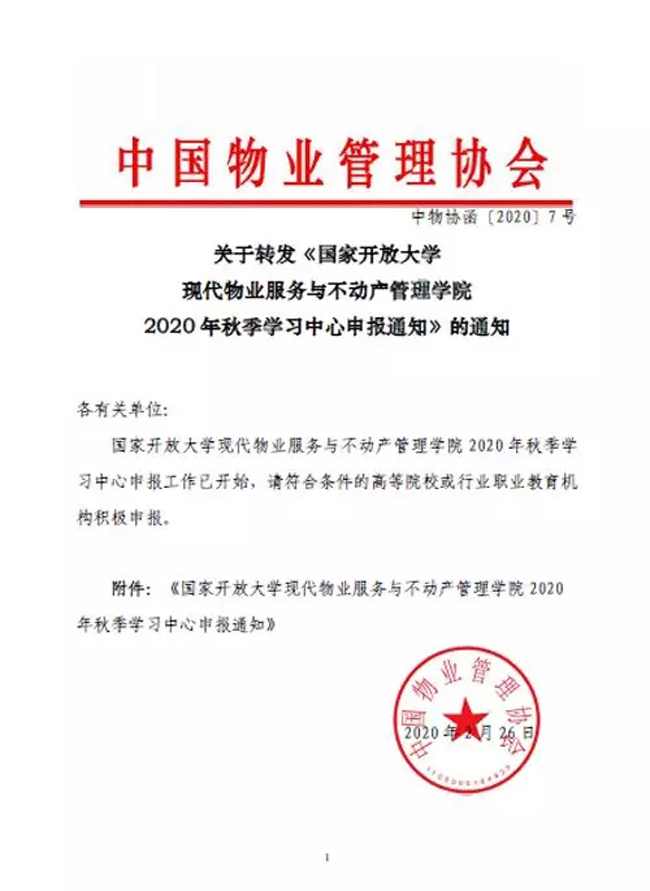 2020226日,87978797威尼斯发布了《关于转发<国家开放大学现代物业服务与不动产管理学院2020年秋季学习中心申报通知>的通知》,行业学院正式启动了学习中心申报及遴选工作,目前已有多家高等院校、培训机构踊跃申报。考虑到当前疫情,学院现阶段采用信息化方式远程指导各单位提交申报材料,并积极探索前期远程和后期实地相结合的学习中心考察模式。