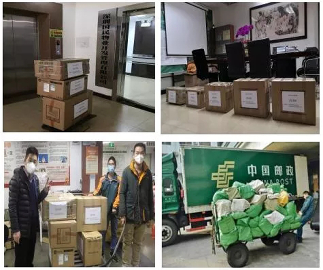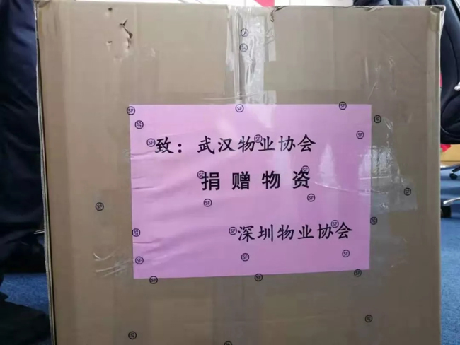 由深圳物协和深圳国民物业共同为武汉物协捐赠的10000双胶手套、20包消毒粉、10个喷壶,通过快递送往武汉物协