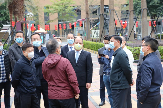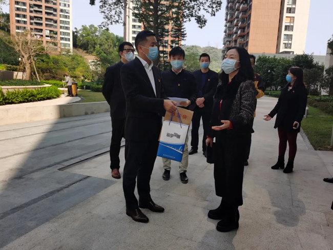 深圳市住建局物业监管处处长张雁等领导赴项目慰问,为物业人员送上口罩、酒精等防护用品▲