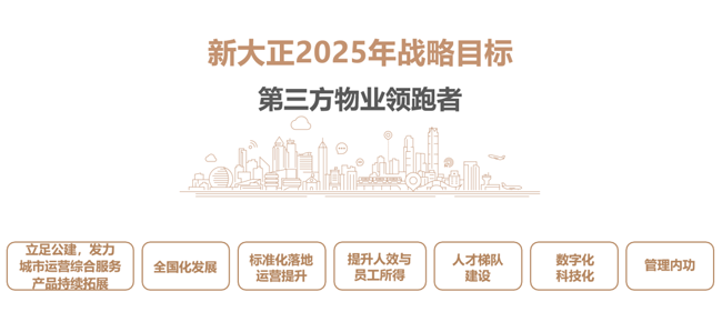 对于未来,公司借力罗兰贝格、德勤的专业咨询,结合新环境、新形势分析,系统构建公司“五五发展规划”,确立未来发展战略。为实现“成为第三方物业领跑者”的战略目标,我们以立足公建物业,发力城市运营综合服务,构建外地市场多个亿级以上中心城市。