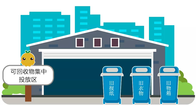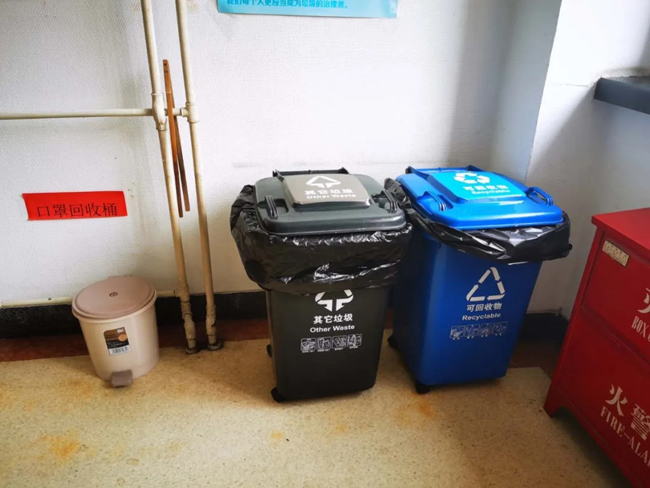 即:厨余垃圾桶、 其他垃圾桶、可回收物垃圾袋