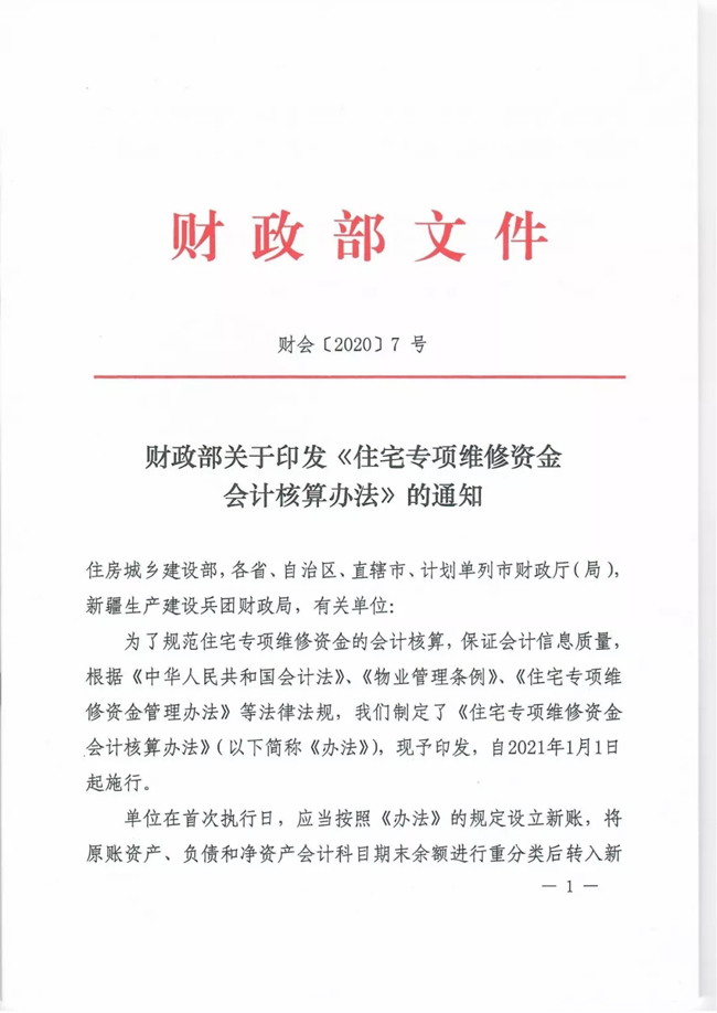 为了进一步规范住宅专项维修资金(以下简称维修资金)的会计核算,保证会计信息质量,促进维修资金的规范管理和安全有效使用,近日,财政部制定发布了《住宅专项维修资金会计核算办法》(以下简称《核算办法》,详情见附件)。