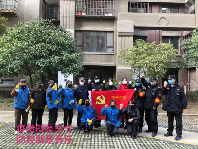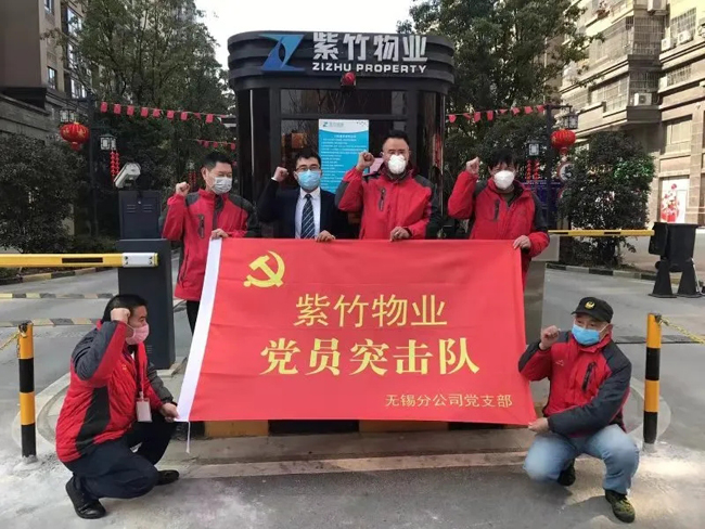紫竹党委坚决贯彻习近平总书记关于新冠肺炎疫情防控工作的重要指示精神和中央、省委、市委决策部署,全面落实坚定信心、同舟共济、科学防治、精准施策的要求,切实履行物业公司防控主体责任。同时动员集团所有力量向防控聚焦,所有资源向防控集中,所有人员向防控发力。集团党委组建党员突击队、先锋队,党委书记、董事长张胜在动员大会上号召:“把党旗挂起来,把党徽戴起来,让党旗在疫情防控一线高高飘扬,让党徽在疫情防控一线闪闪发光。”面对严峻的防控形势,紫竹党员闻令而动、向旗而立,发扬不畏艰险、无私奉献的精神,冲锋在小区防疫一线,配合小区所在社区做好人员排查、居家隔离、防控宣传、公共区域消杀、封闭式管理等各项工作,以实际行动践行初心使命,发挥党员先锋模范作用。