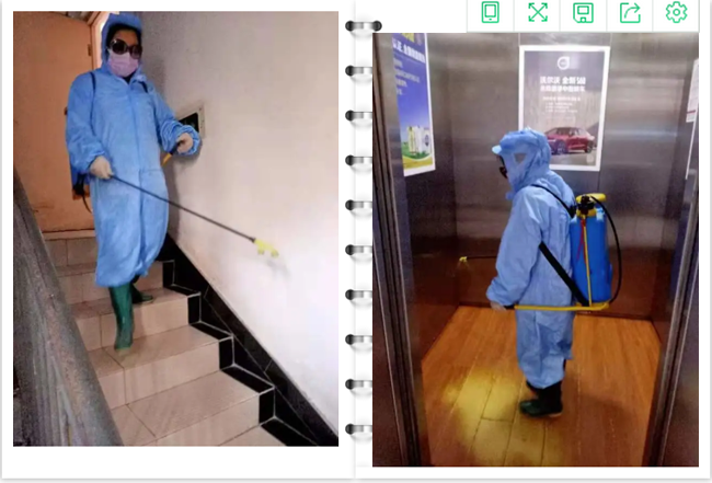 面对突如其来的疫情,外地同事无法及时返岗,为保证防疫工作的正常开展,陈秋霞带领着她的6人团队主动承担起鑫苑名家三期共计47个门栋、22部电梯的消杀工作。