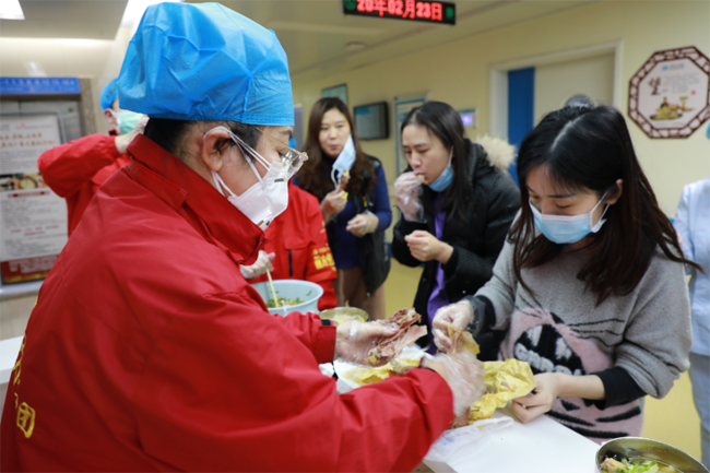 为了表示对一线工作者的关怀和敬意,薛书记特意安排圆方集团职工餐厅煮了很多汤圆和饺子,然后又亲自带领餐厅工作人员先后到郑州南站高速路口和郑州市莆田乡人民政府疫情检测点,为疫情防控工作人员和志愿者们送去软糯香甜的汤圆和热气腾腾的饺子。