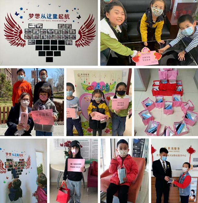 面对史上最艰难的开学局面,校方做好防控,学生自我保护,家长随时叮嘱,时刻警惕,提防病毒的趁虚而入。从4到5月,世茂服务在上海、无锡、杭州、成都、重庆、西安、西宁、天津、青岛、廊坊、内蒙古、厦门、福州、晋江、平潭、南宁等地开展了“开学季暖心关怀活动”为世茂服务广大小业主们送去防护用品,为复课“神兽”们的安全防护加码。
