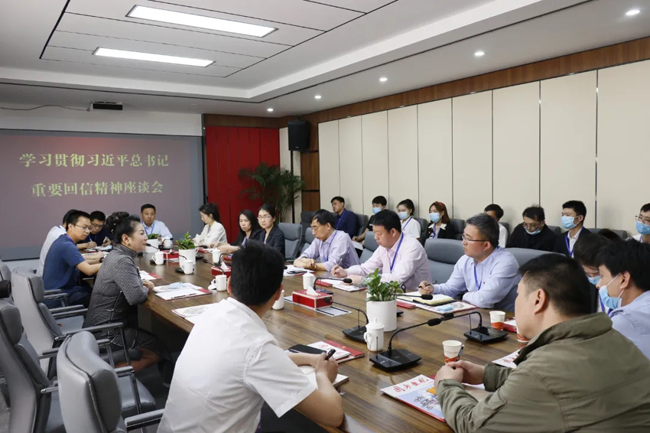 首先,参会一行与郑州圆方集团党委书记、总裁薛荣同志进行了座谈交流。薛书记生动地讲述了她带领企业员工驰援武汉、北京等一线主战场期间发生的“把儿子推到抗‘疫’前线”、员工纷纷请战等感人故事,回顾了给习近平总书记写信的初衷与过程,并与参会人员重温了信件内容。薛荣说:“党建不是挂在墙上的展板,嘴上喊喊的口号。圆方集团的党组织也不是一朝一夕就建成的,是经过了多年的历练才有今天这个成果。”