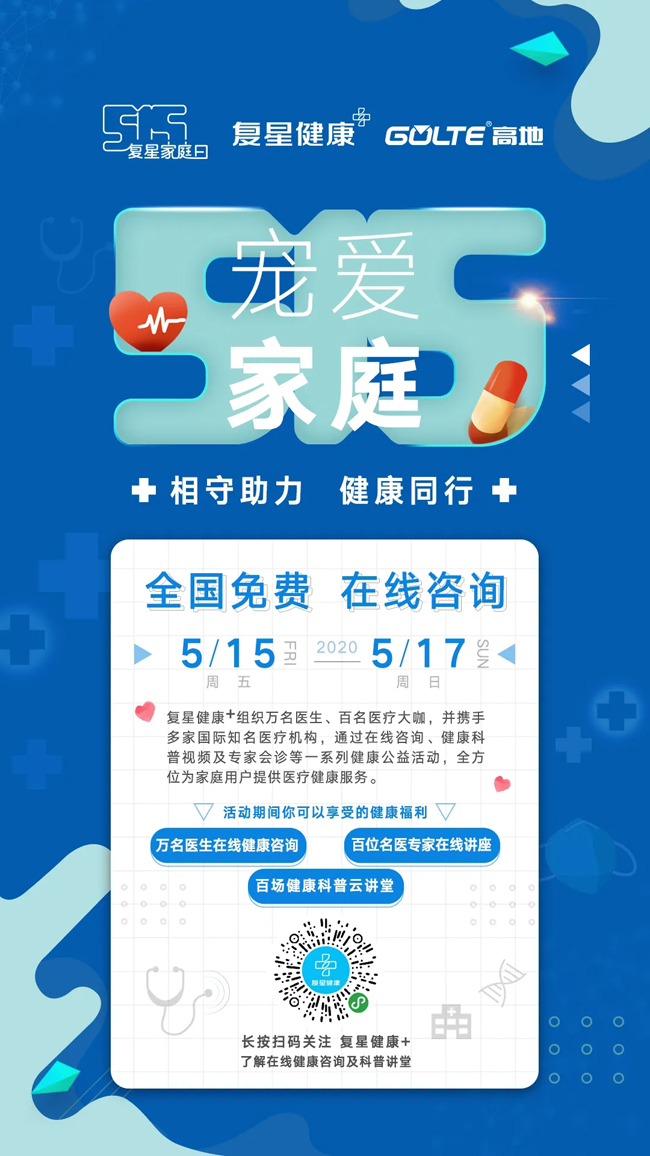 从5月1日开始,“复星健康+”名医讲堂正式开播!5月15日,复星国际董事长郭广昌对话复旦大学附属华山医院感染科主任张文宏,围绕抗疫常态化之下的健康生活方式进行讨论。5月15日-17日,“复星健康+”免费线上义诊活动正式开始。