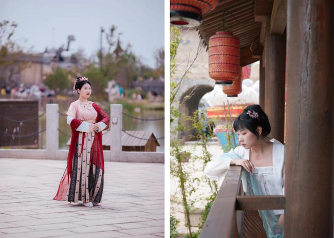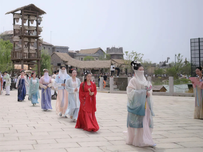 汉服秀结束后,汉服巡游就开始了,各位身着汉服的业主与汉服协会的成员携手游园,吸引了不少游客的目光,不少穿汉服来电影小镇玩的游客们也加入了进来,整个队伍浩浩荡荡,一起行走在电影小镇的大街小巷,俨然成了当日电影小镇的一道风景线。