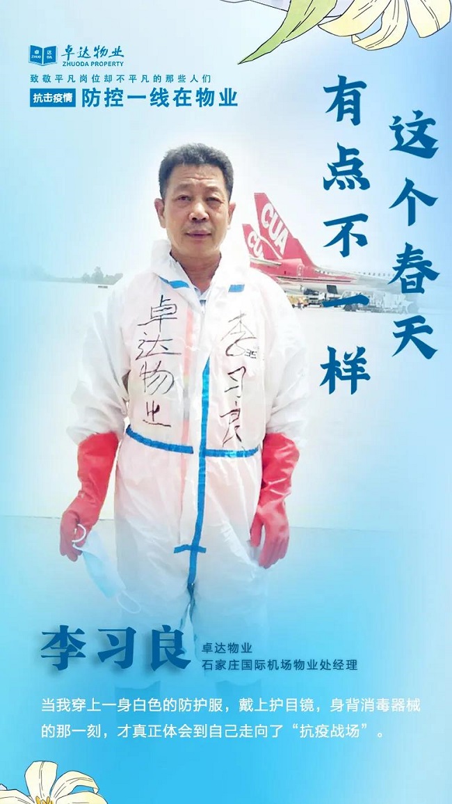 他说,在这一个多月的国际航班的保障工作中,他们深知,自己的行动不只是代表着自己更是代表着卓达物业人,勇敢面对考验和挑战,必须听从指挥,肩负起责任和使命,用行动不折不扣的完成每次国际航班的保障工作。