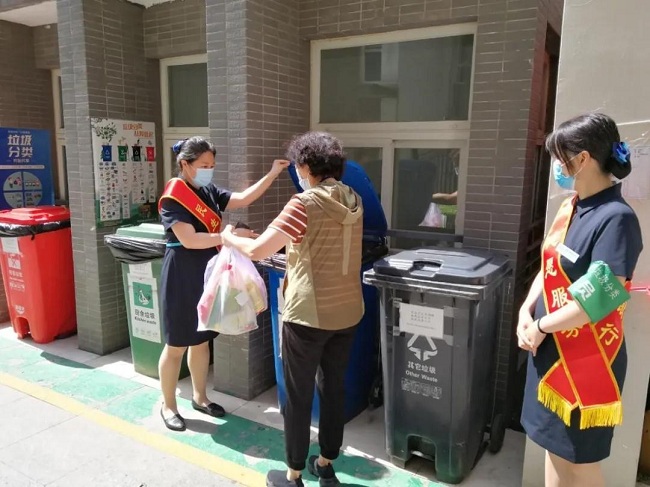 在党建的引领下,在基层社区组织的统筹和指导下,远洋亿家是社区治理体系和垃圾分类工作的重要一环,也正在发挥着联动各方的关键作用。有的项目物业服务中心比较小,资源有限,垃圾分类工作开展难度大,项目就在社区党委的指导帮助下开拓思路,社区和物业工作人员逐户走访动员商户加入志愿服务,充分调动业主和商户参与到垃圾分类中来。有的项目为了推动业主积极参与,就向垃圾投放规范的业主发放“垃圾分类达人”卡券,集齐一定数量就能兑换精美分类垃圾桶一个,也大大激发了居民参与垃圾分类的主动性。