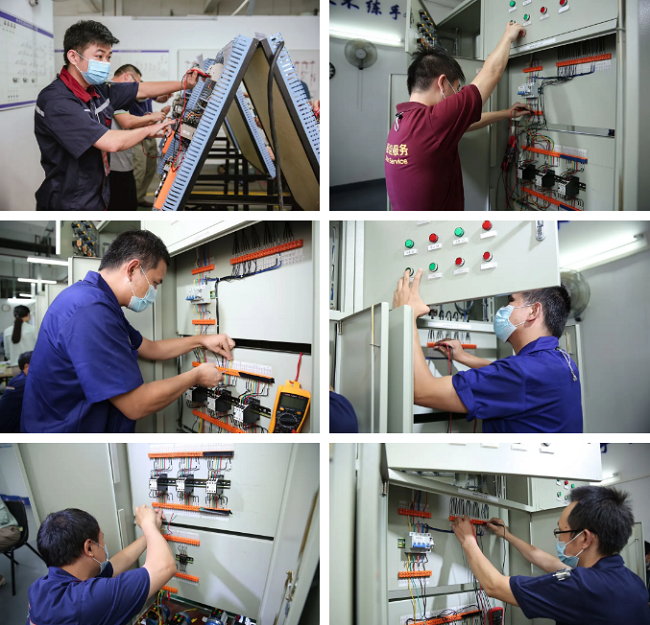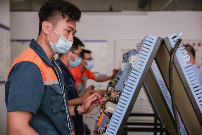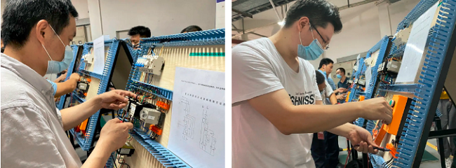 电工组的竞技则分为理论考试和实操考核,实操考试分为继电器线路连接调试和继电控制电路故障的排除2个模块进行。