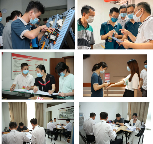 6月21日上午,物业管理员组、电工组正式进入紧张的赛事比拼。管理员组的竞赛分为理论考试、答辩考试2个环节进行。