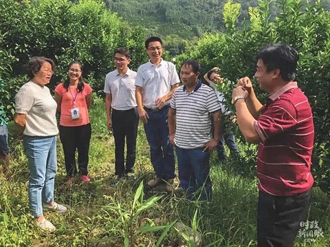 △2018年8月份,广西乐业县百坭村第一书记黄文秀(左二)邀请专家指导村民发展砂糖橘产业。2019年6月黄文秀不幸遇难后,习近平总书记对其先进事迹作出重要指示。(资料图)