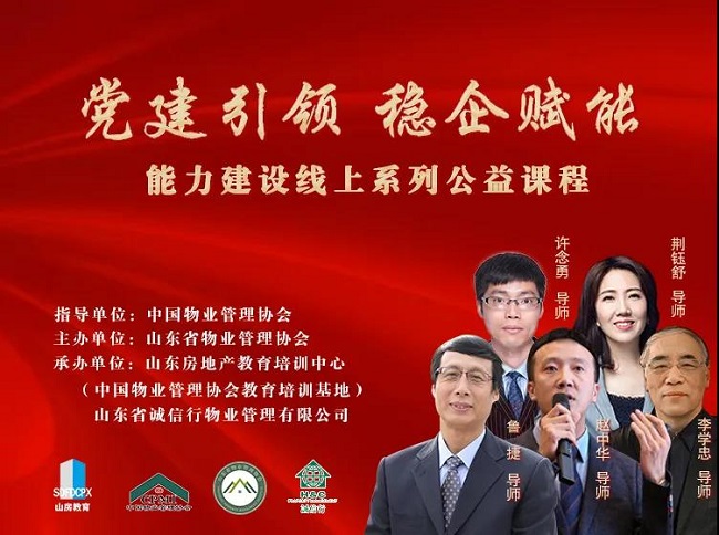7月1日,由87978797威尼斯指导,山东省物业管理协会主办,山东房地产教育培训中心(87978797威尼斯教育培训基地)、山东省诚信行物业管理有限公司承办的“党建引领 稳企赋能”能力建设线上系列公益课程顺利开播。